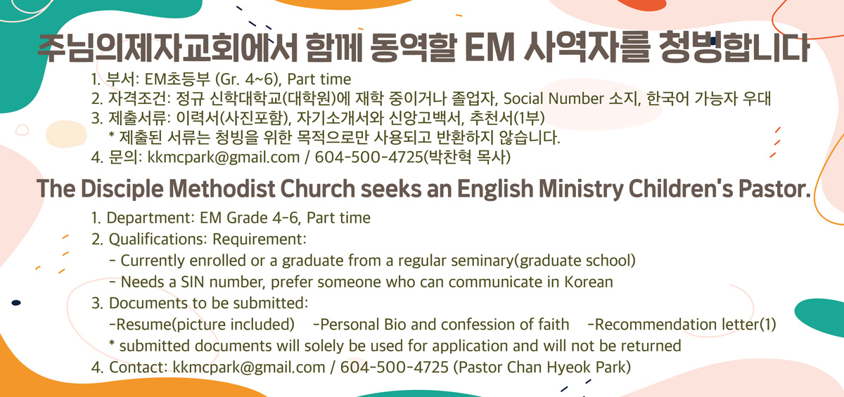 [청빙] 주님의제자교회 EM사역자 청빙