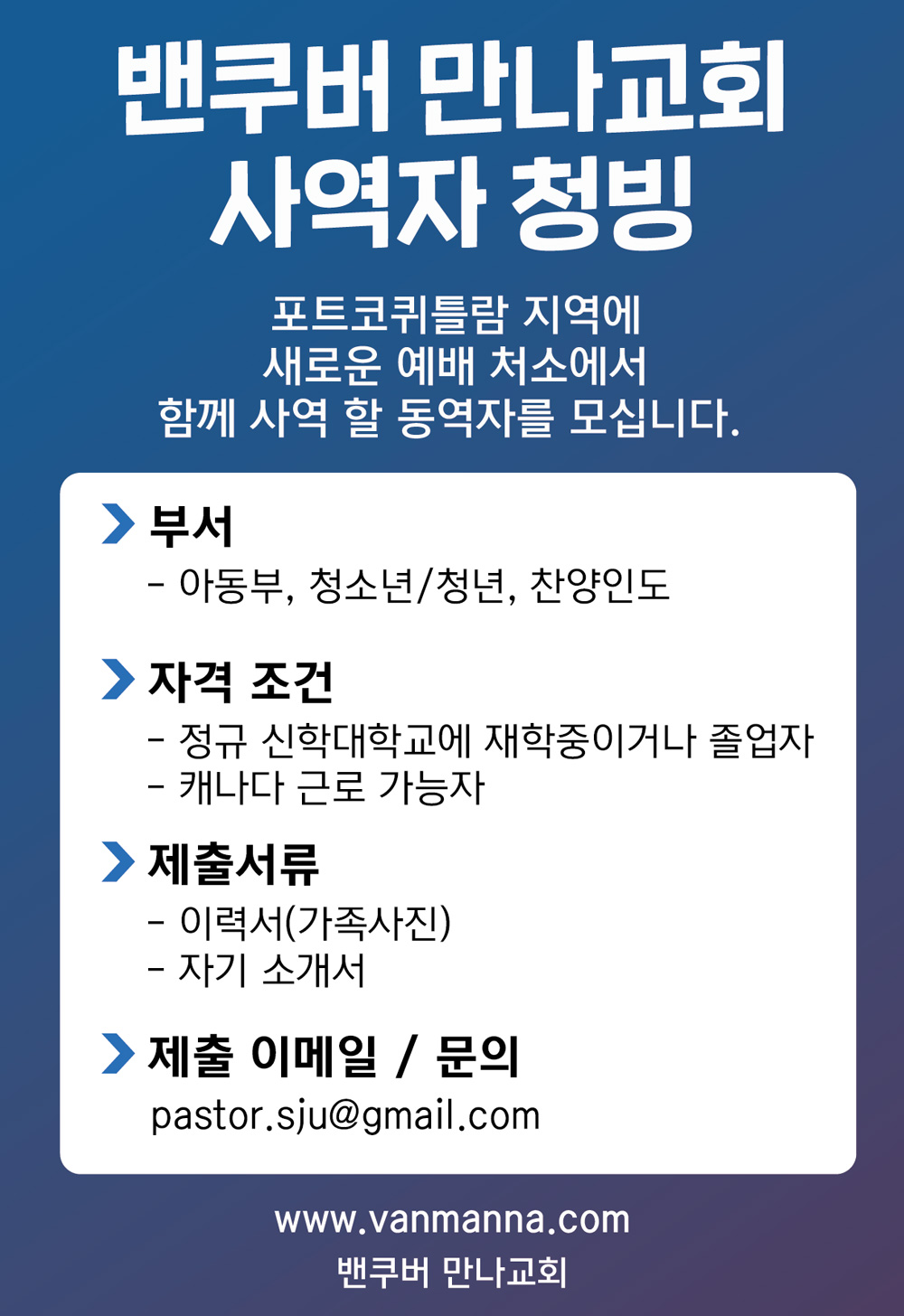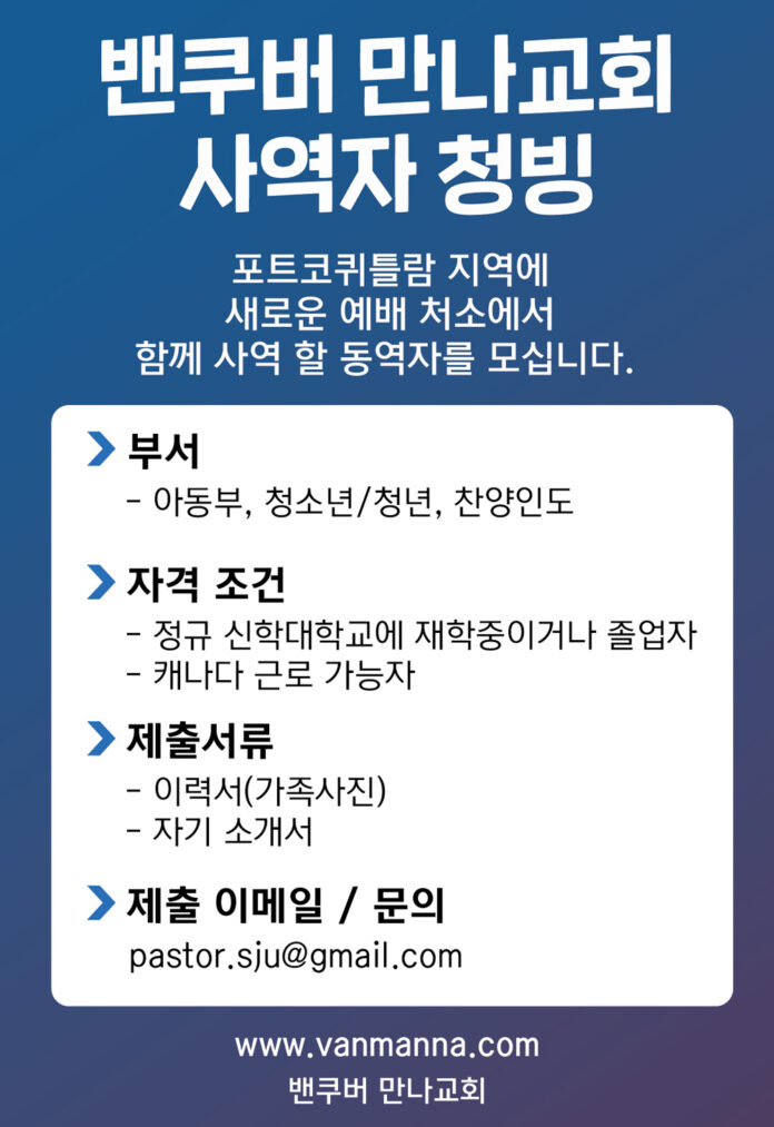 [청빙] 밴쿠버 만나교회 사역자 청빙