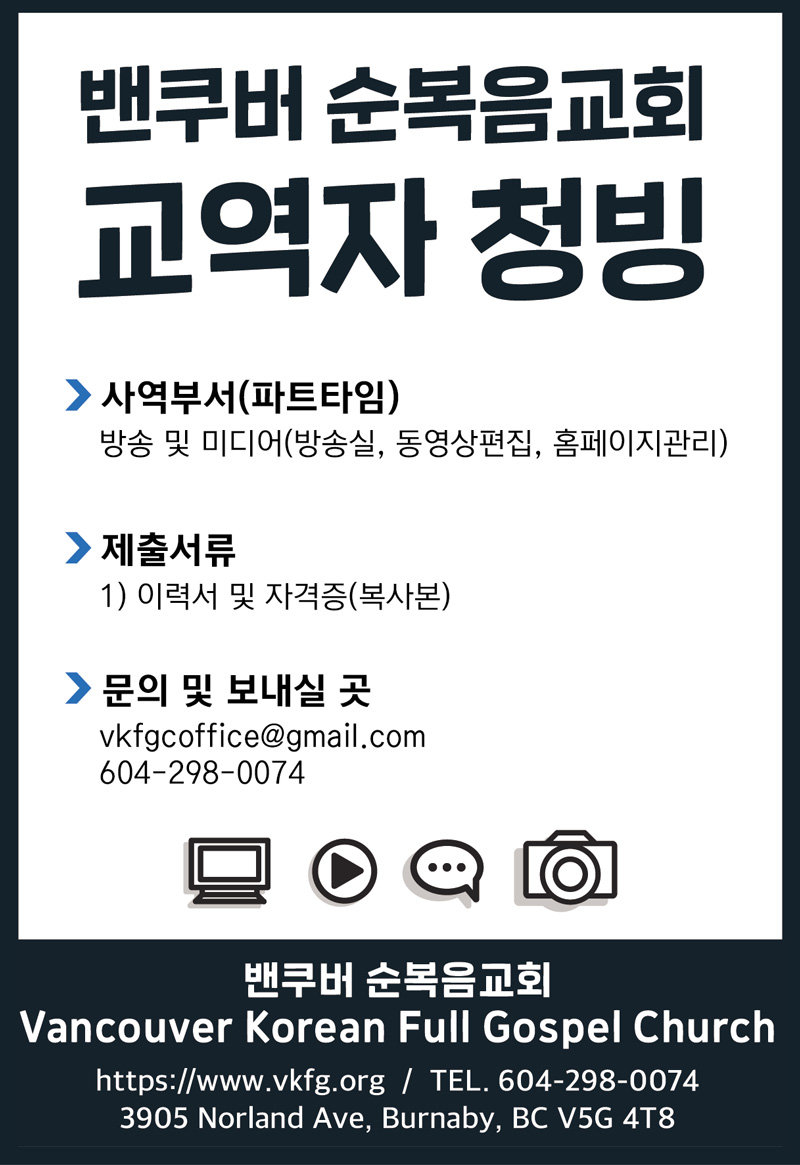 [청빙] 밴쿠버순복음교회 교역자 청빙