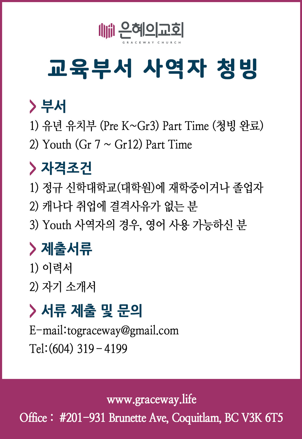 [청빙_재업로드] 은혜의교회 교육부서 사역자 청빙